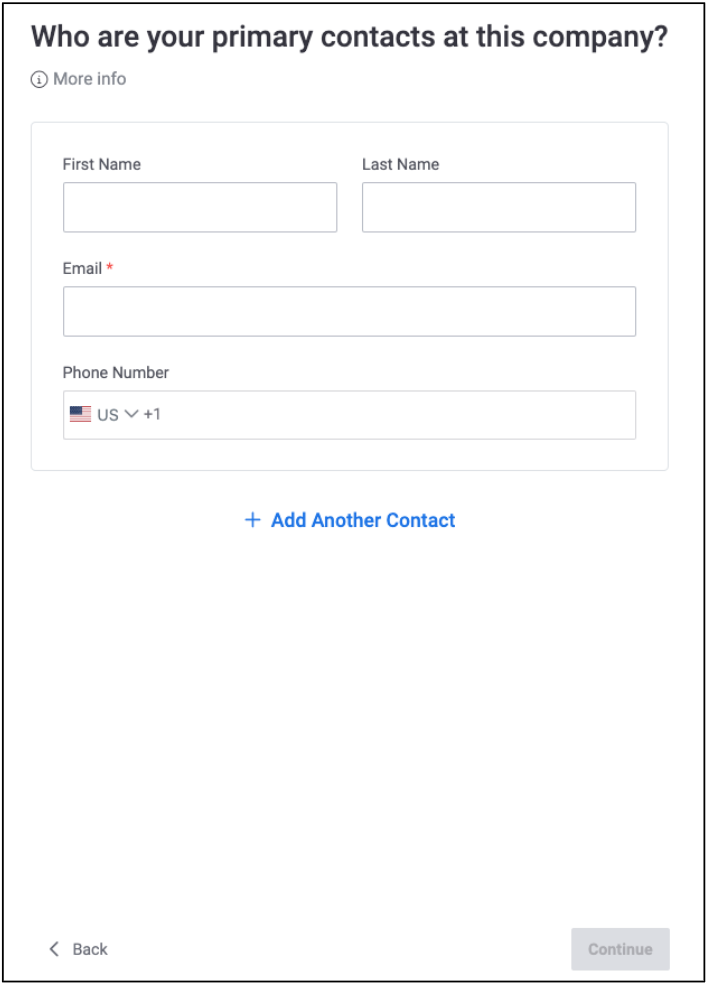• If you selected an existing company in Step 3, you have the option to provide new contact information or select from a list of existing contacts.