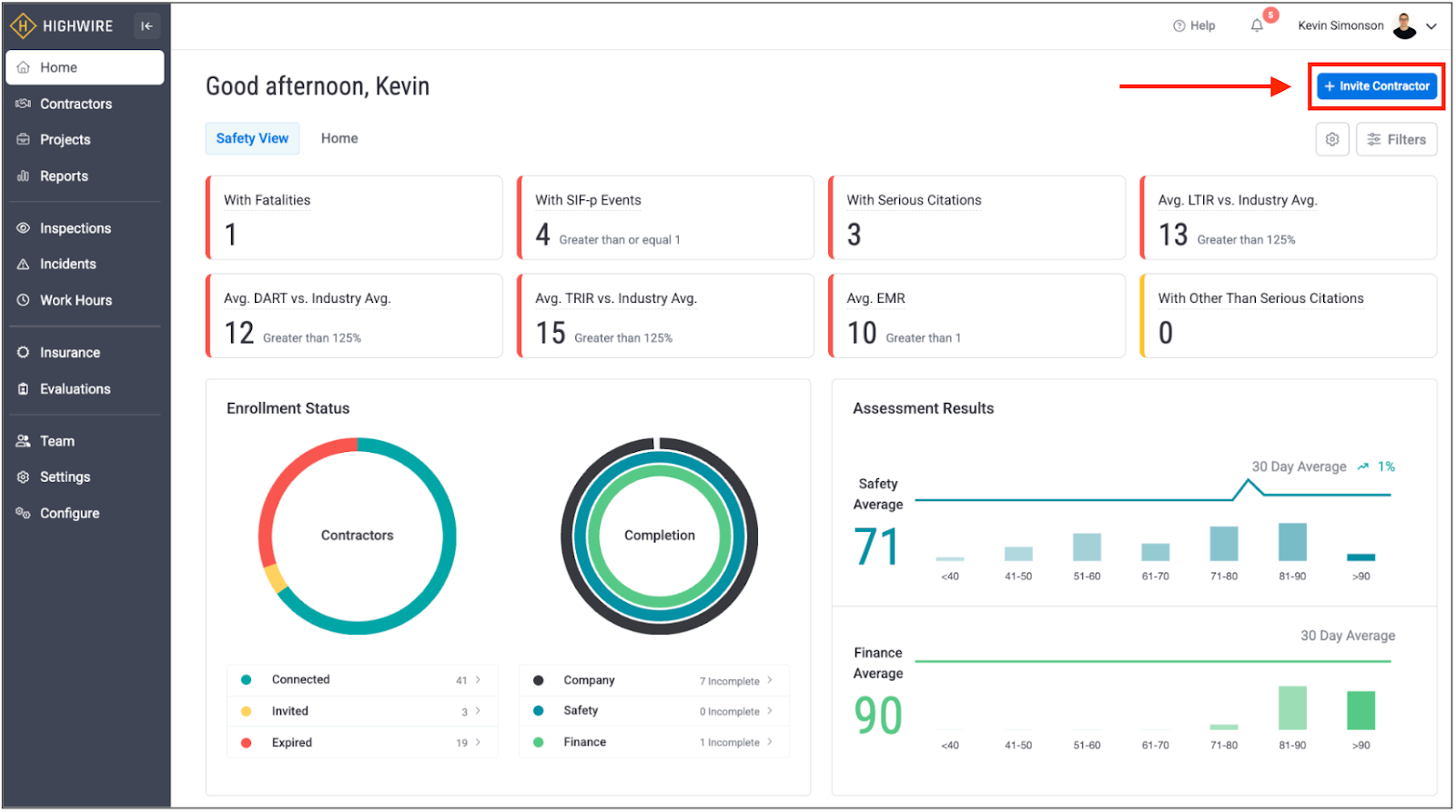 How do I invite a contractor to enroll in Highwire?
