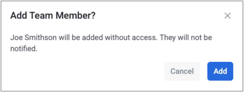 Team members who were created with No Access (i.e., contacts) will not be notified that they were added to your Team page: