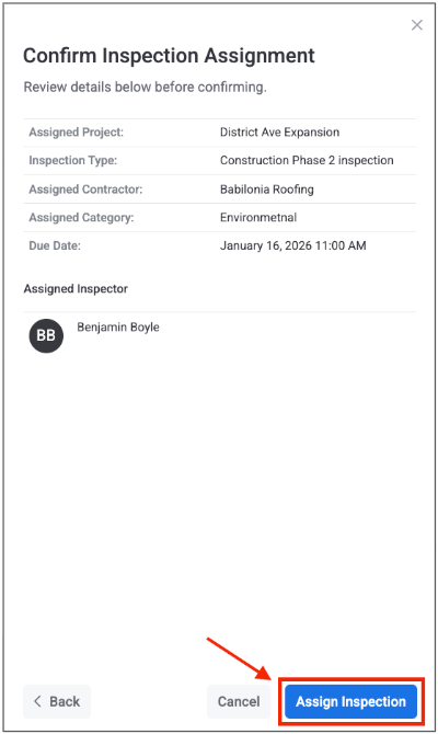 Review the details of your inspection assignment, then click “Assign Inspection:”
