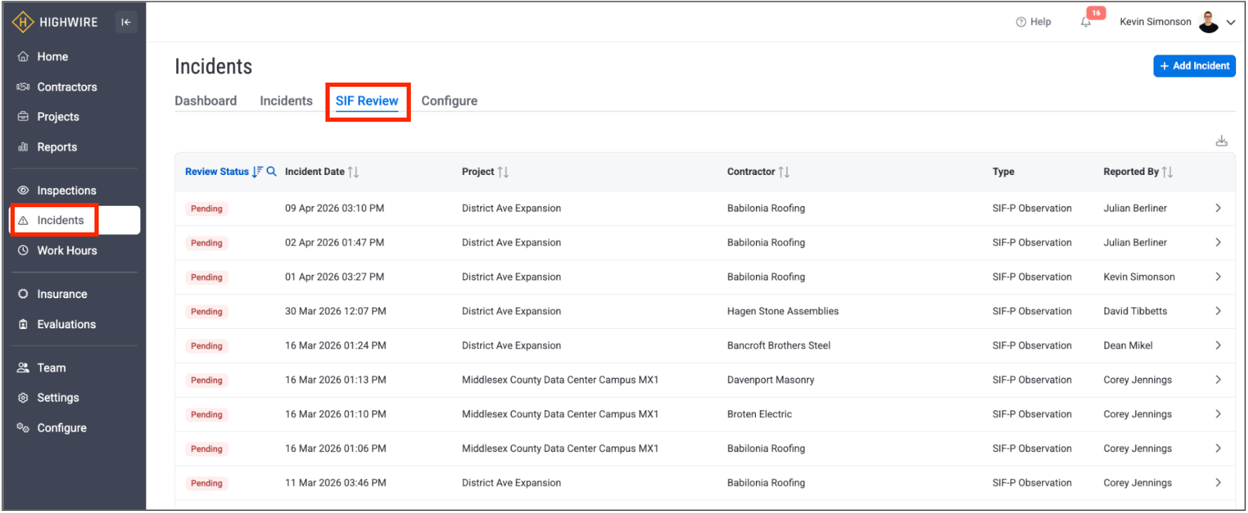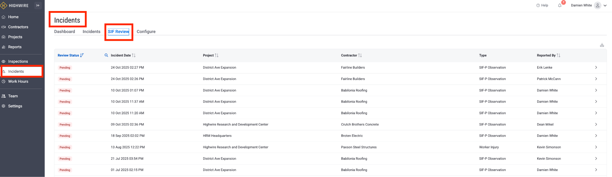 Today, we investigate every recordable incident across the industry, regardless of severity, which has led to the decline in recordable rates. However, we are missing out on valuable opportunities to investigate and learn from events with SIF-potential because we do not consistently give a high level of attention to the most serious exposures. Clients can use Highwire Incidents to change that. Specifically, the SIF Review tab itemizes all incidents where a SIF-P observation has been made or where a worker injury has occurred: