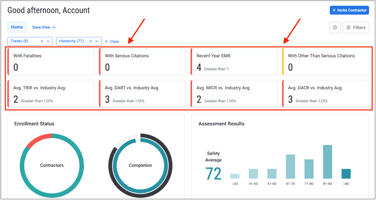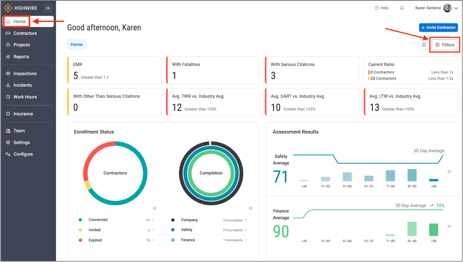 Filters allow you to tailor your view to focus on what matters most. By selecting the right filters, you can save time and quickly access the information that’s most relevant to you. You’ll find filter options on both the Home tab and the Contractors tab.