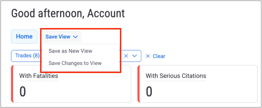 To save your chosen filters for quick access in the future, click “Save View” and then select “Save as New View.” In the pop-up window, enter a name, determine who you would like to share the view with, and click “Save.”