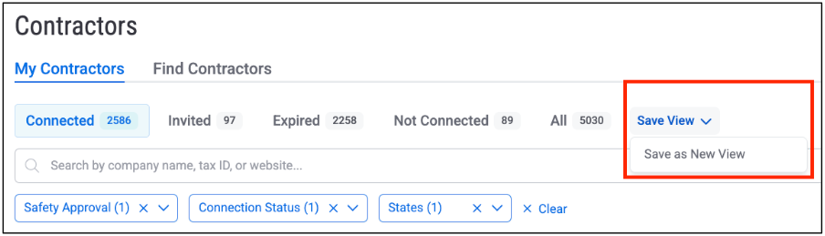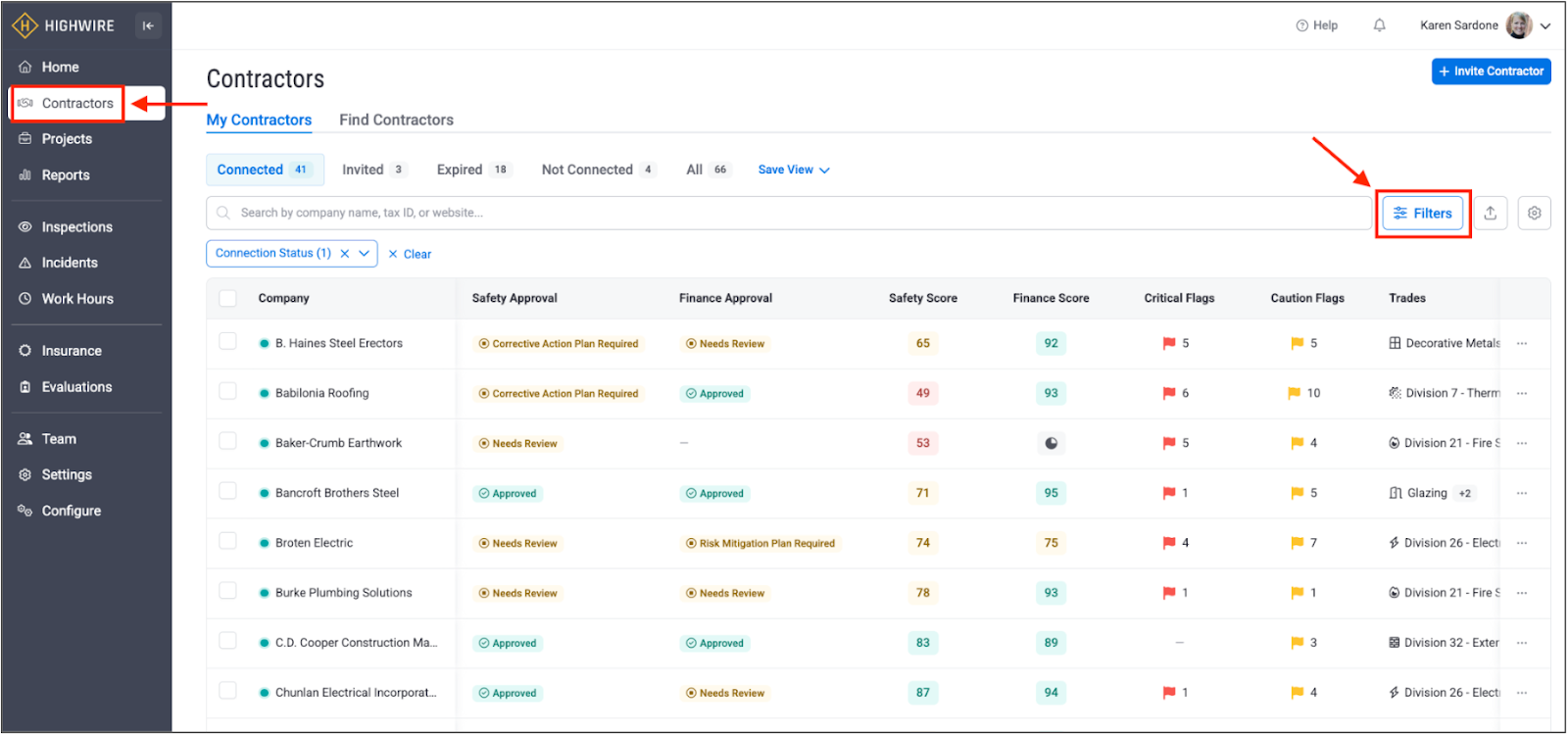 After making your selections, click anywhere outside of the Filters window to view your updated “My Contractors” list.