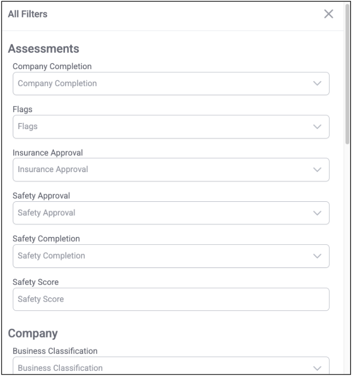 Once opened, you will be presented with a variety of filters to further customize your view of contractors. Scroll down within the menu window to ensure you see all available filters.