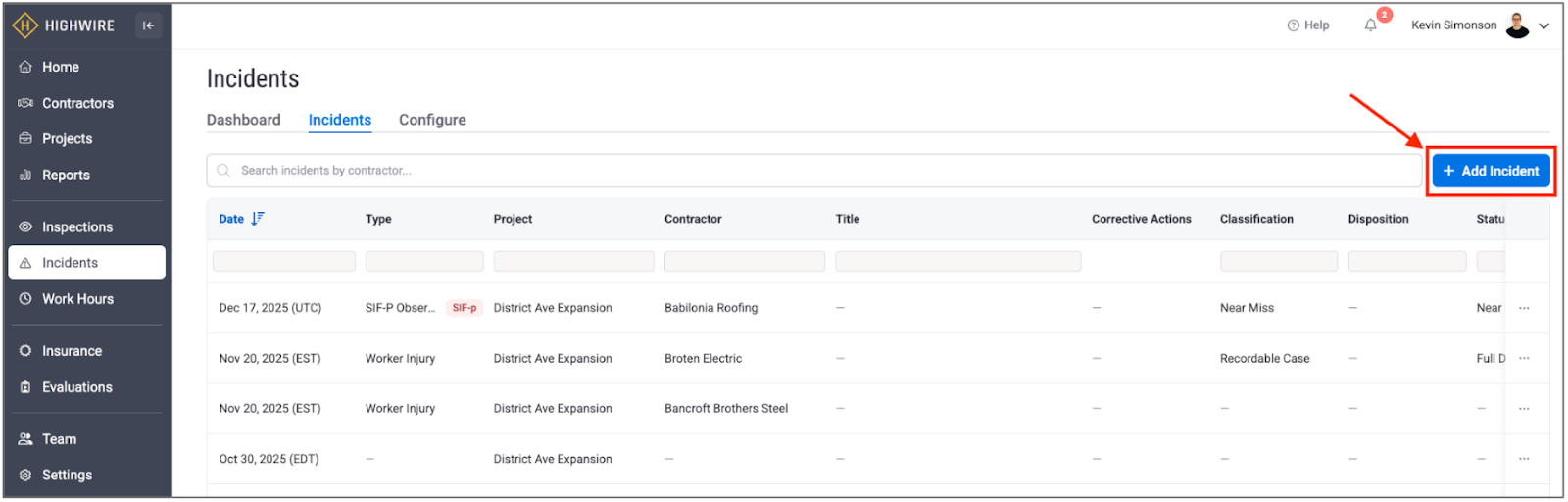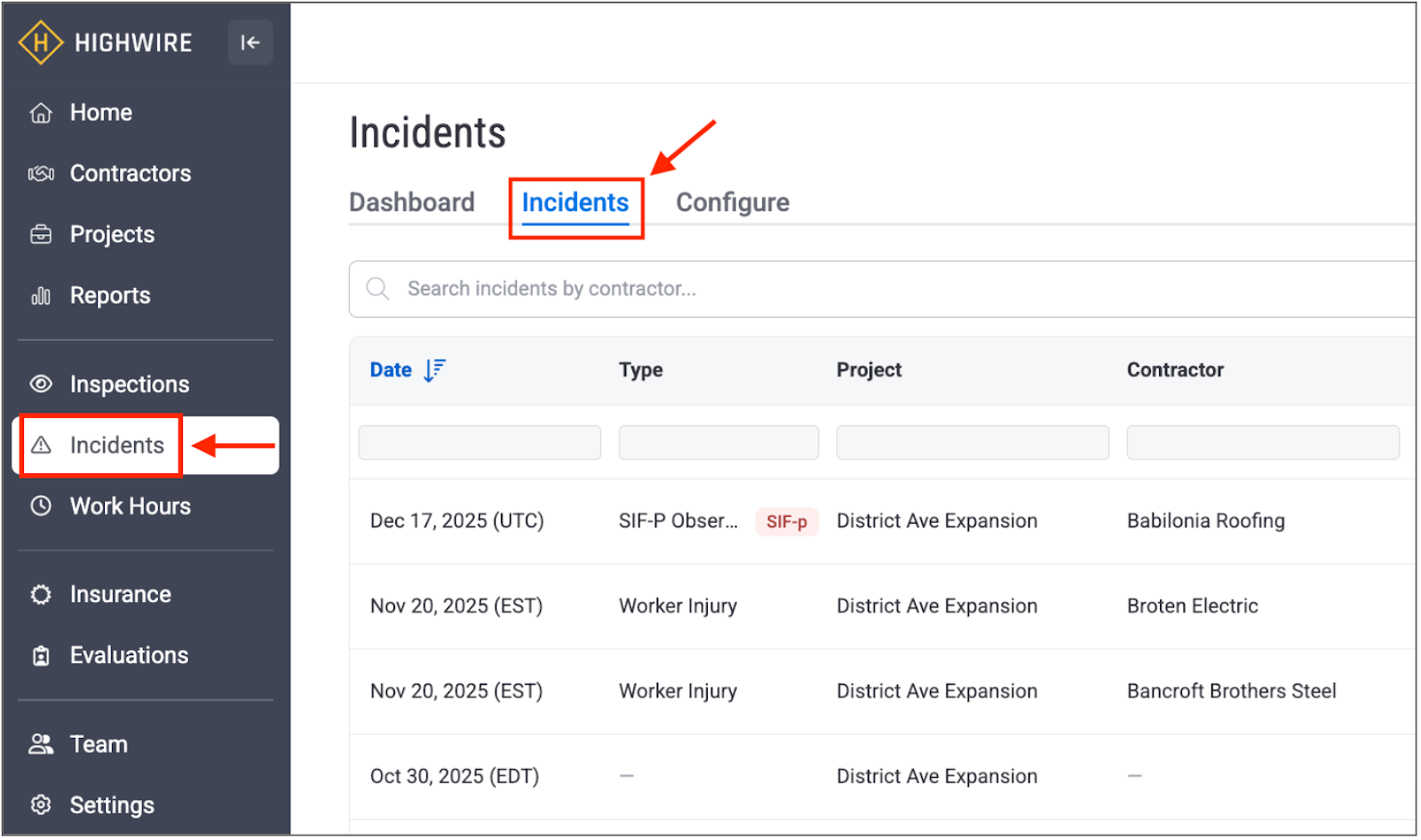 1. On the left-hand navigation, click Incidents, followed by the “Incidents” tab.