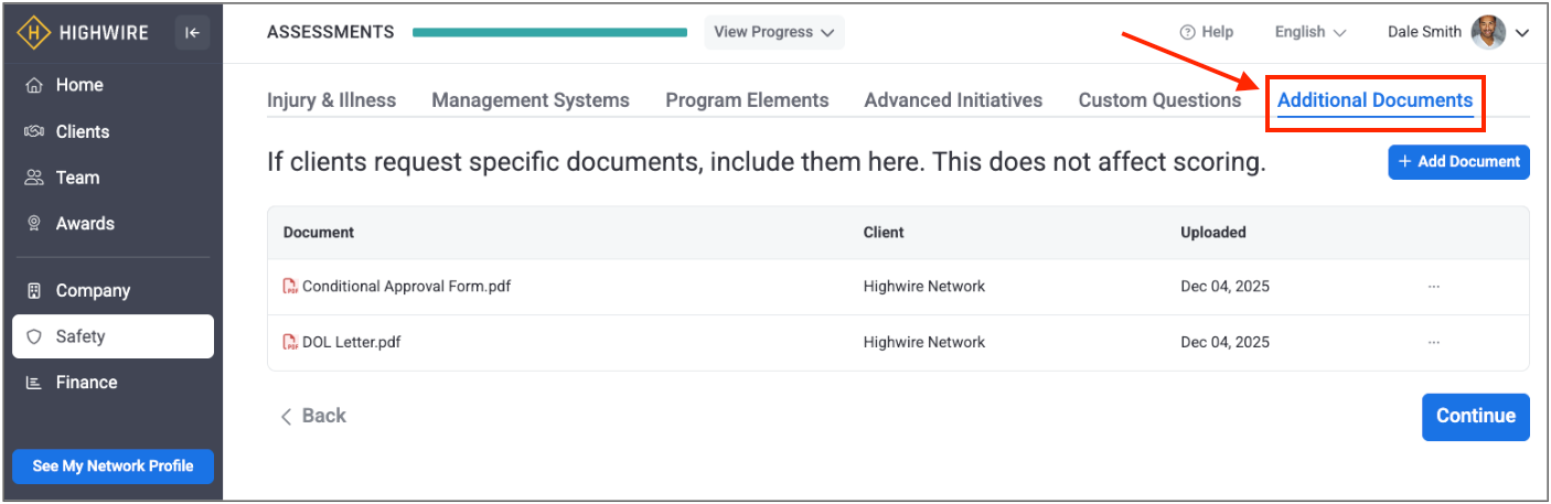 The Additional Documents tab replaces the functionality that had previously been on the Dashboard called ‘Supplemental Information’. The new tab allows you to upload any supplementary materials about your company that you’d like to share with your client(s). Common examples include Corrective Action Plans, and documentation related to mergers or acquisitions.