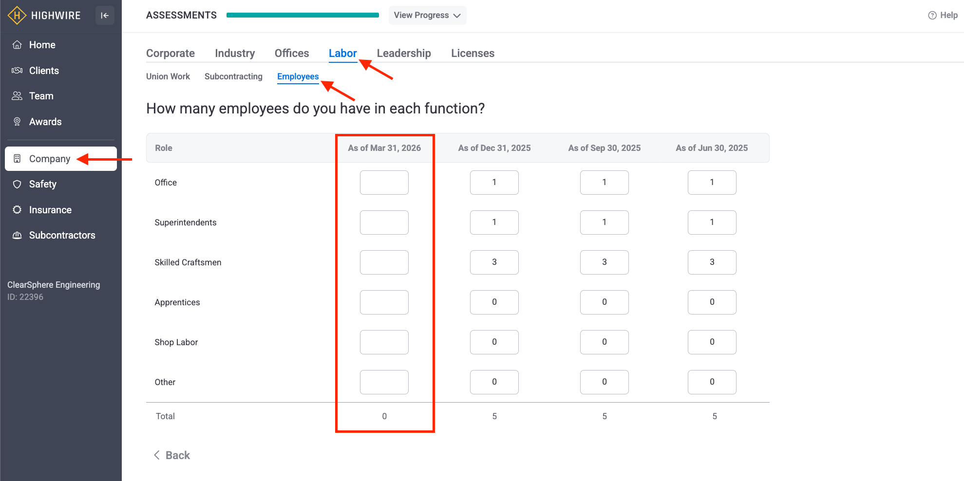 If you have received the ‘Complete Your Highwire Assessments’ email, and your profile shows all sections at 100%, please check the Employees section under Company > Labor > Employees.